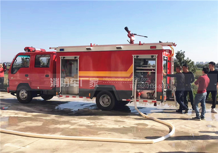 3噸水罐消防車,采用20的消防泵,20 的消防炮,出水壓力1MPa,射程50米,滅火效果很好,買一臺消防車,保一廠平安,值了。