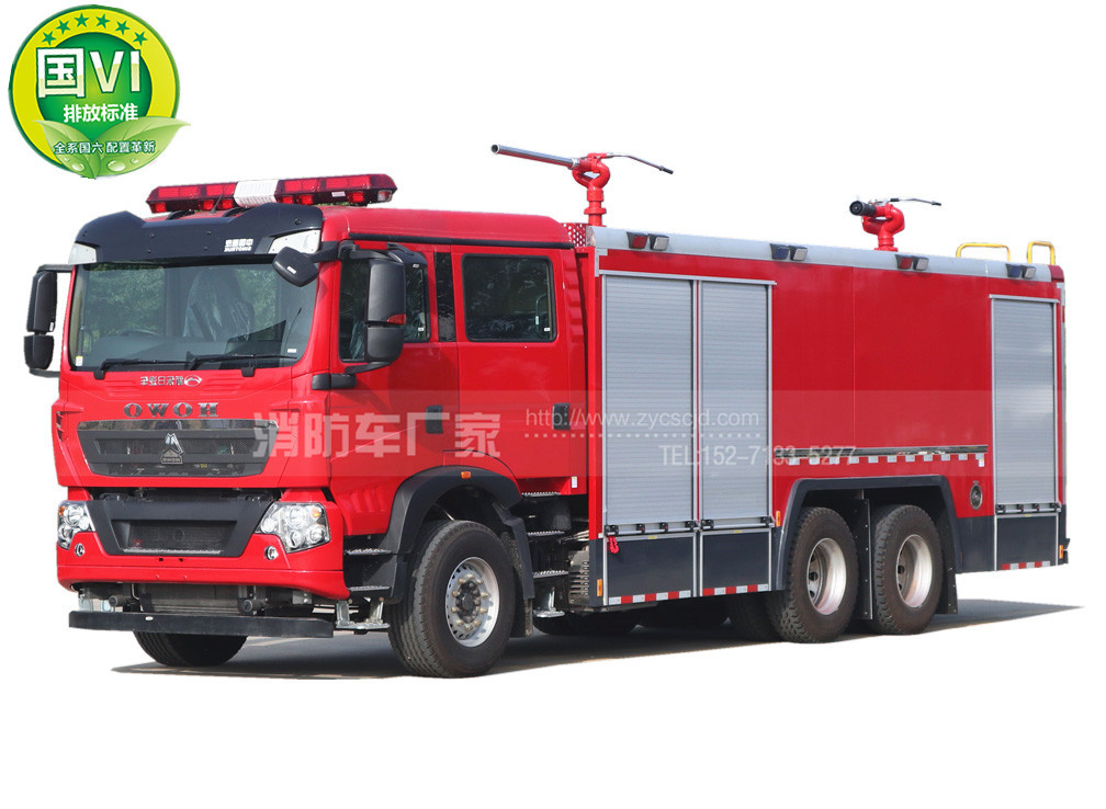 豪沃雙橋泡沫干粉聯用消防車采用中國重汽集團濟南卡車股份有限公司生產的豪沃型載重汽車二類底盤,駕駛室可翻轉,便于發動機維修。上裝包括泵房、器材箱、水罐、泡沫罐和干粉罐等,整車載液量為水6000L、泡沫2000L,干粉3000L。水罐采用優質Q235碳鋼板、泡沫罐采用304不銹鋼焊接而成,干粉罐體材質為Q345R。裝備CB10/60常壓消防泵、PL8/48型兩用消防炮、PF5~15/30干粉炮。該車具有功率大、車速高、操作方便等特點;可廣泛用于大中城市公安消防隊、石油化工、廠礦企業、港口和碼頭等場所,可撲救大型油類火災和一般物質火災,是理想的中型消防設備。